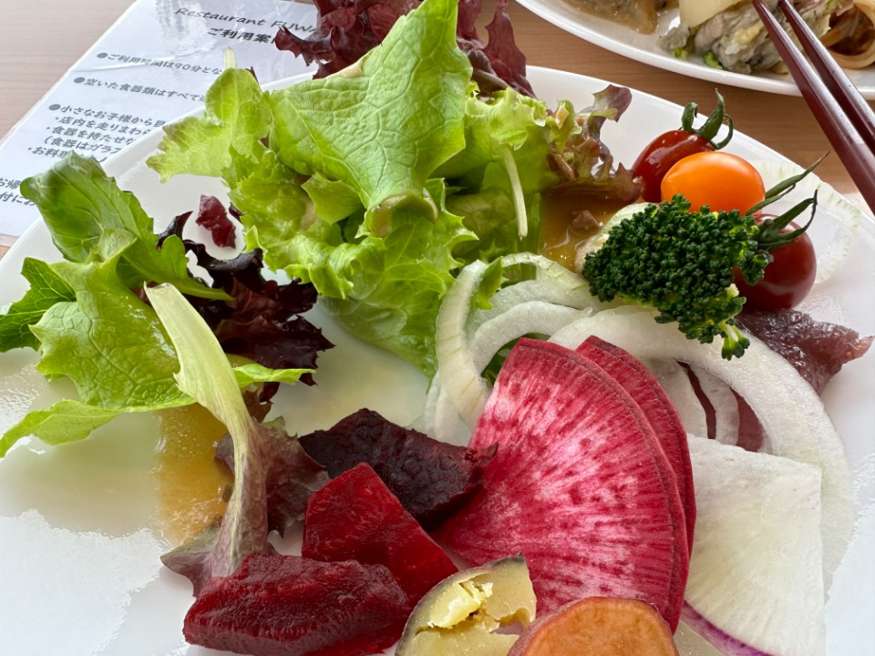 ここの 「レストランFUWARI」のビュッフェ、野菜がとっても美味しかった!!サラダは野菜の種類が多くて新鮮。ドレッシングの種類とても多くてこれがまた美味。ブルーベリーのドレッシングなんてものもあり、サラダを何度もおかわりしちゃいました。