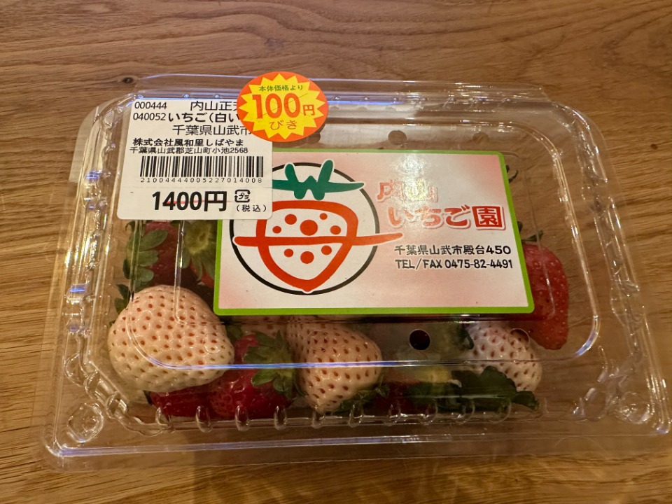 私は白イチゴが決めてで苺を購入。社長は真っ赤なスモモを買いました。