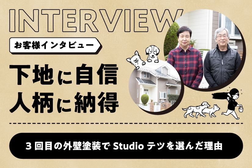 施工事例 Works ホーム施工事例 お客様インタビューその他外壁塗装屋根塗装 すべての事例 Read more 2025.11.28 お客様インタビュー 【お客様インタビュー/千葉県】 「下地に自信。人柄に納得」——3回目の外壁塗装でStudioテツを選んだ理由 Read more 2024.01.16 外壁塗装屋根塗装 【施工事例13/千葉県】 楽しい!が詰まった塗り替え Read more 2022.01.15 外壁塗装屋根塗装 【施工事例12/酒々井町】 千葉県酒々井町で外壁屋根塗装グリーン系 Read more 2021.10.02 外壁塗装屋根塗装 【施工事例11/四街道市】 千葉県 四街道市 外壁塗装・屋根塗装・玄関ドア塗装 Read more 2021.09.21 その他 【施工事例10/千葉市】 屋根塗装 乾式コンクリート瓦塗装 Read more 2021.08.17 外壁塗装 【施工事例09/酒々町】 外壁塗装(タイル調仕上げ) Read more 2021.08.17 外壁塗装屋根塗装 【施工事例08/酒々町】 外壁・屋根塗装 Read more 2021.08.17 外壁塗装屋根塗装 【施工事例07/酒々井町】 外壁・屋根塗装 Read more 2021.08.17 外壁塗装屋根塗装 【施工事例06/八街市】 外壁・屋根塗装 一覧に戻る次へ